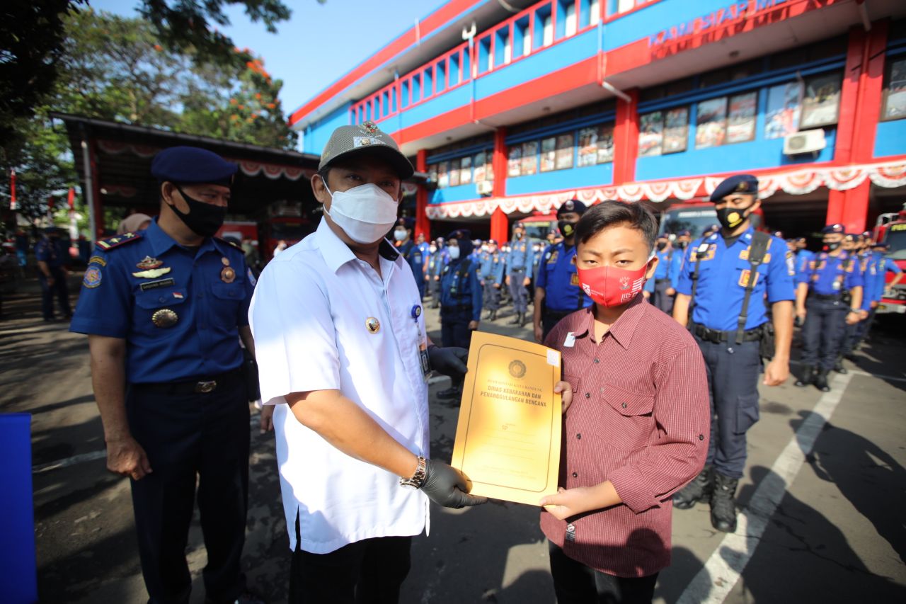 Putra-putri petugas Damkar yang memperoleh bea siswa di antaranya Najib (Perguruan Tinggi), Nisa Fatimah (SMA), Hasti Yustinti (SMP), dan Muhammad Nadir (SD).